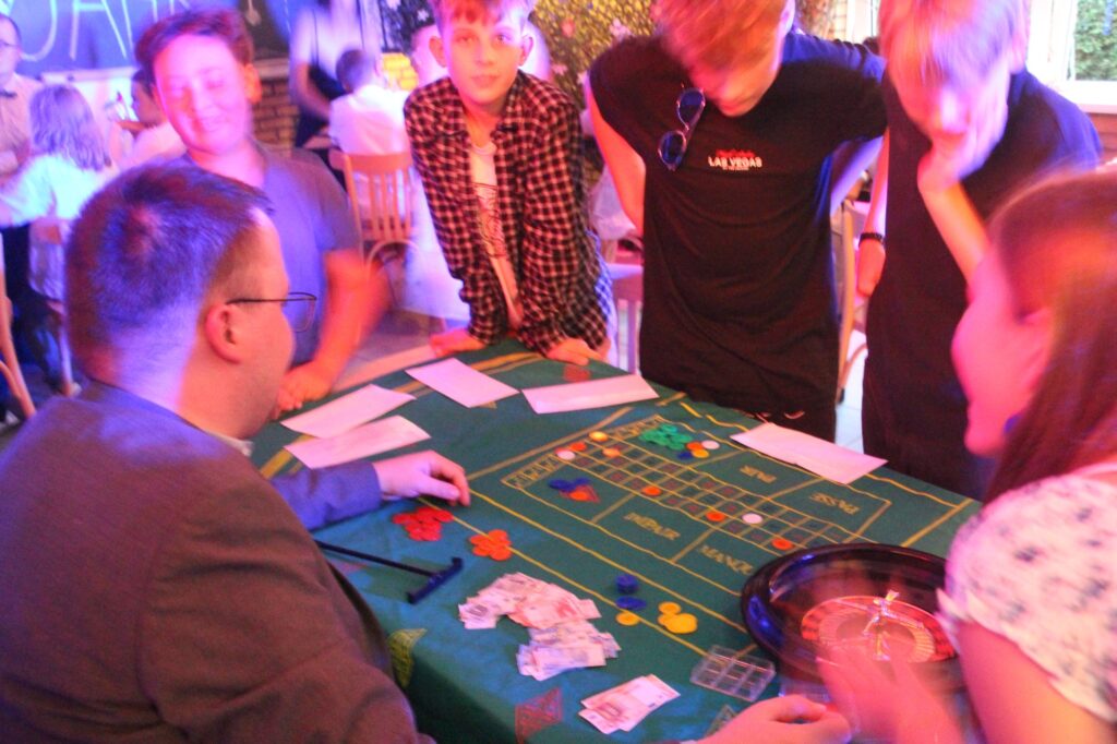 Da das Wetter sehr unbeständig war, blieben wir nachmittags im Lager, wo in Workshops gespielt oder gebastelt wurde. Währenddessen ging schon das Gerücht um, dass abends ein Besuch im Casino anstehen würde. Bei Roulette, Poker, 4 gewinnt und Dreierpasch gingen so einige (Spiel-)Euros hin und her. Nachdem wir die Bank ordentlich ausgenommen hatten, ging es ins Bett. Wir sind schon gespannt, welcher Monat uns morgen erwartet!